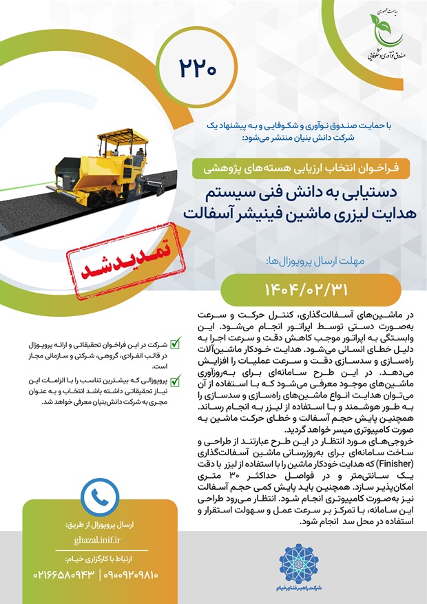 فراخوان های مشارکت در اکتساب فناوری 04 خرداد - 1404 | r.gholami گروه آموزشی: دانشکدهتصویر برای خبر یا اطلاعیه: