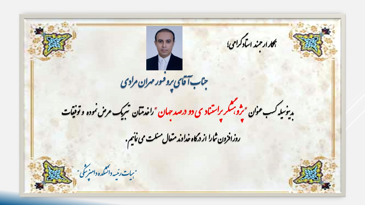 پیام تبریک برای جناب آقای دکتر مرادی (2درصد پراستناد) 15 مهر - 1404 | r.gholami گروه آموزشی: دانشکدهتصویر برای خبر یا اطلاعیه: