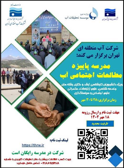 فراخوان شرکت در مدرسه فصلی شرکت آب منطقه ای تهران سال 1404 16 مهر - 1404 | r.gholami گروه آموزشی: دانشکدهتصویر برای خبر یا اطلاعیه: