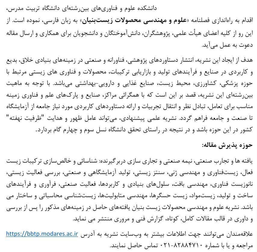 فصلنامه علوم و مهندسی محصولات زیست بنیان 20 آبان - 1404 | r.gholami گروه آموزشی: دانشکدهتصویر برای خبر یا اطلاعیه: